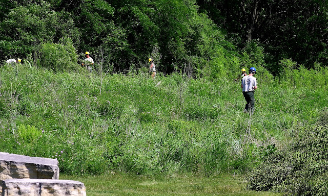 The Conservation Corps were back this year, cutting down young invasive trees at the prairie patch located at the NE corner of the Park, along the entry road. (Wolf. Oesterreich, 6/4/18)
